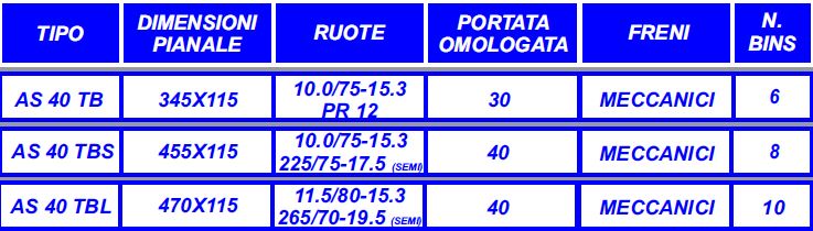 Tutte le caratteristiche riportate (ruote, dimensioni ecc…) sono indicative e possono subire variazioni senza preavviso a discrezione del costruttore.